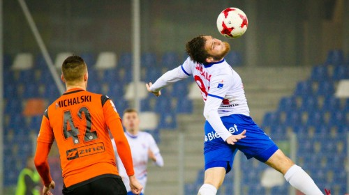 Valērijs Šabala sezonas sākumā Polijas pēc spēka 2. līgā lielākoties devās uz maiņu un sākumsastāvā bija iekļauts vien divas reizes, bet nu Latvijas izlases uzbrucējs starta vienpadsmitniekā bija trešo maču pēc kārtas un otro spēli pēc kārtas bija rezultatīvs. Jau pirmajā puslaikā Šabala vairākkārt apdraudēja vārtus, bet 61. minūtē viņš pēc stūra sitiena ar galvu izbraukumā panāca 1:0.